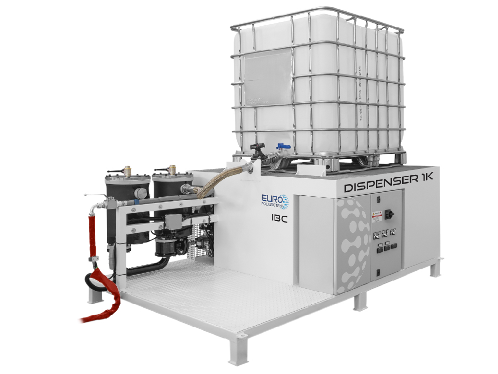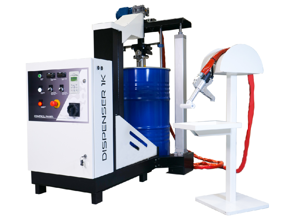 La mezcla se realiza automáticamente, el bidón y el tubo se calientan para permitir que el adhesivo fluya